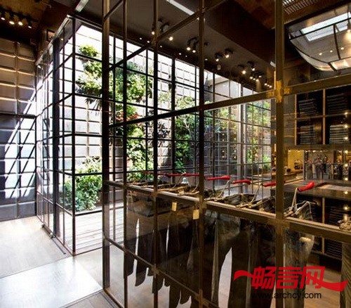 第二座墙表面的植物遮住了历经不同气候侵蚀的金属瓦,让店里更加漂亮。