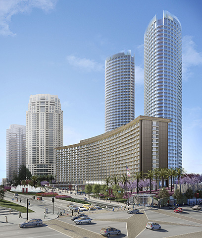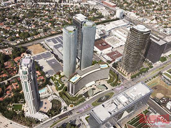 世纪广场酒店翻新和加建项目是位于加州西洛杉矶上流社会聚居地比华利山的黄金地段。洛杉矶地铁延长线的配套建设就在酒店旁,步行几分钟可达地铁,知名百货公司梅西、超市和名牌中学也都在周围。项目包含两座46层高的住宅楼,涵盖290套公寓单元,394间酒店房间、6英亩绿化及广场、2080个停车位。