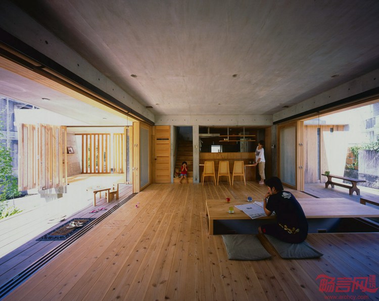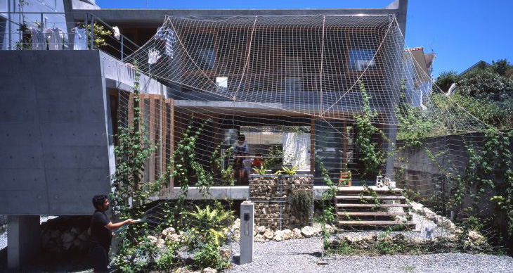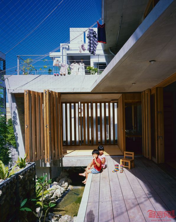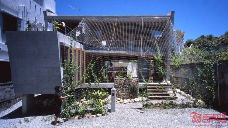 项目位于日本冲绳岛上,是一座混凝土住所。宽大的屋檐和金属网天棚最终将被绿植覆盖,为屋内带来凉爽。大阪芦泽龙一事务所的“风屋”位于14世纪Shuri城堡西南的一个居民区中,在东中国海的岛上。建筑是对冲绳乡土住宅的临时改造,设计师向周边环境致以敬意,保持了人和自然之间的和谐共生。