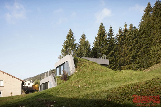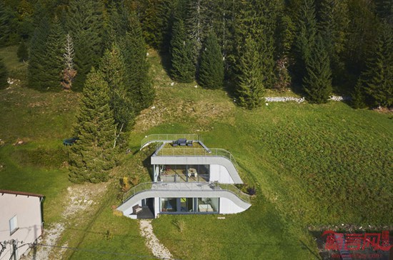 JDS建筑事务所设计了位于法国乡间的Jura别墅。青草覆盖了建筑的曲面屋顶,设计师营造出当地田园住宅的当代版本。项目坐落于法国Jura地区Bois D‘amount村,是一个度假屋。项目名称来源于连绵起伏的Jura山,背靠山坡,面朝草甸。设计方案将房屋部分嵌入地形中,帮助缩小对环境的视觉影响。