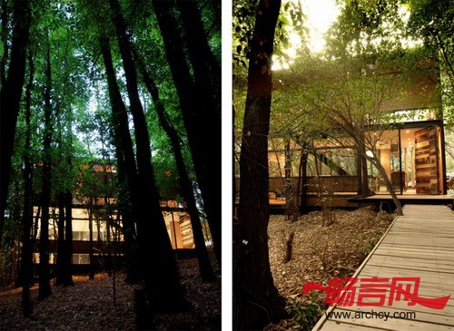 建筑师Robert Frost说:“森林是深邃阴暗的,却非常漂亮,所以我们将住宅隐蔽在这静谧的森林中。”