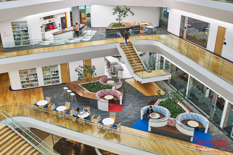 所有的社区空间顺畅连接,以促进沟通和鼓励多元化。印度尼西亚传统蜡染装饰、重复利用的柚木原木、印度尼西亚家具及图像广泛应用于这一总部大楼中,营造出鲜明又独特的场所感。