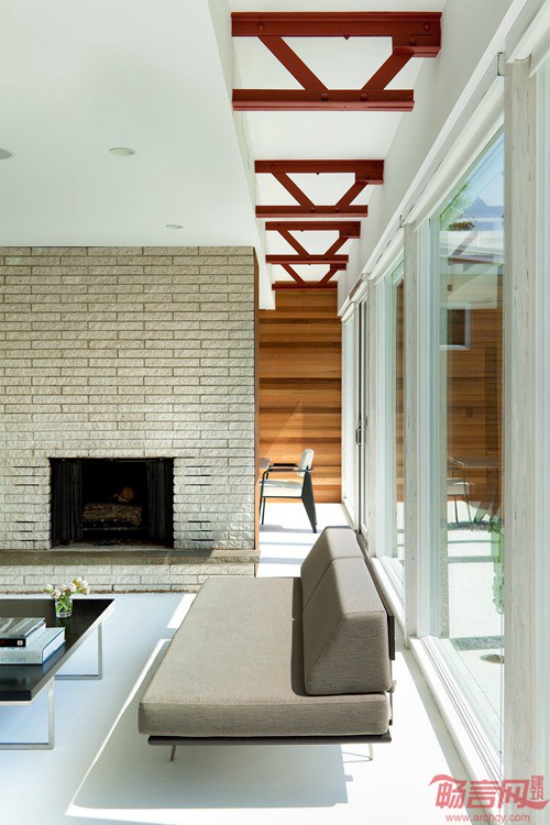 新泽西Jeff Jordan工作室对一座上世纪中期的建筑进行了翻新,使其成为落地玻璃、白色地坪和木质墙面的空间。针对这座建于1954年的项目,设计师打通了整个格局,并添加了落地窗。工作室在整个空间选用了现代主义元素,例如杉树墙面和五十年代装饰物。Hillcrest住宅位于纽约哈德逊Valley,许多来纽约的人向往这里的景观和丰富的艺术气息,这里设有Storm King户外雕塑公园和Dia Beacon当代博物馆。