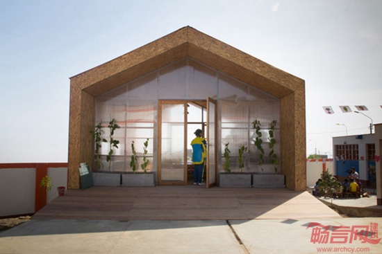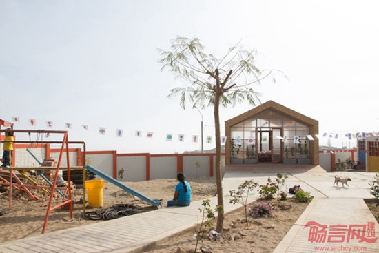 项目由51-1建筑事务所设计,位于秘鲁Ventanilla,面积54平米,于2013年完工。所在地区干旱少雨,使贫民区人民的生活环境较为恶劣。儿童的生存环境缺少树木植被,其父母在2小时距离外的城市终日工作。在政府和非盈利组织的支持下,沙漠彩虹餐厅诞生了。该项目面向3-5岁儿童,在老师的帮助下,他们学习种植作物,做饭,和同伴共享食物,并学会欣赏自然的健康气息。