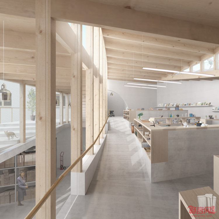 在传统的博物馆空间中,公众与技术的功能是严格区隔的。在本次设计中我们将空间定义为交换的媒介。一般的处理是将幕后的一些功能隐藏,或者索性埋在地下,与之不同的是,我们将文物修复等功能打开,并通过剖面的处理使其与公众的视线连接。使博物馆的馆藏与公众的活动交织。这是一个公众,研究者,与艺术家发生共鸣的共享空间。我们认为馆藏并不是冰冷的人工物,观者也不是匆匆过客,而被统筹于文化事件的一部分。