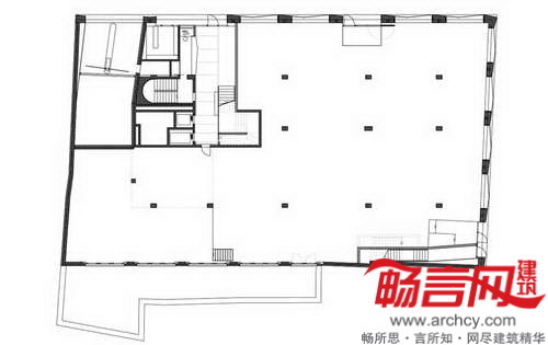 服务中心偏向斜长方形建筑平面图的一侧,而模块结构便于灵活的安排。