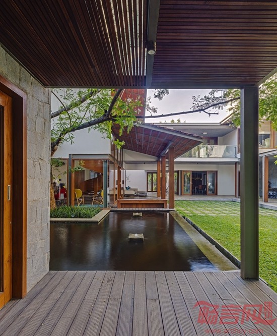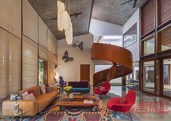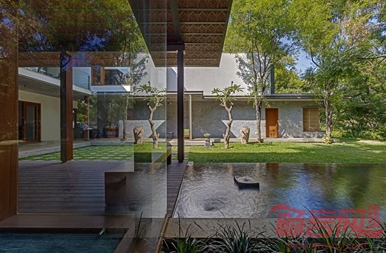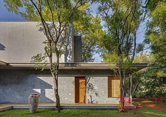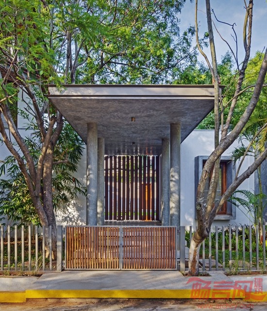 Krishnan别墅位于印度班加罗尔市,占地16000平方英尺,周围有许多成年树木,为此,建筑师设计了相对较矮的建筑结构,既可以体现当地的建筑审美,又可以适应周围的绿植环境。