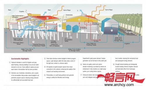 WBF实验室还使用了许多可持续性材料,包括再利用的玻璃、室内木板和FSC(美国安全委员会)认证的木材等等。这个实验室不只是全部由捐赠资金建造的,它也是美国第一个使用零级水(zero-water)的实验室,它还是世界上第一个获得LEED金奖的酿酒厂、啤酒厂和食品加工厂。此外,WBF还获得了众多奖项。