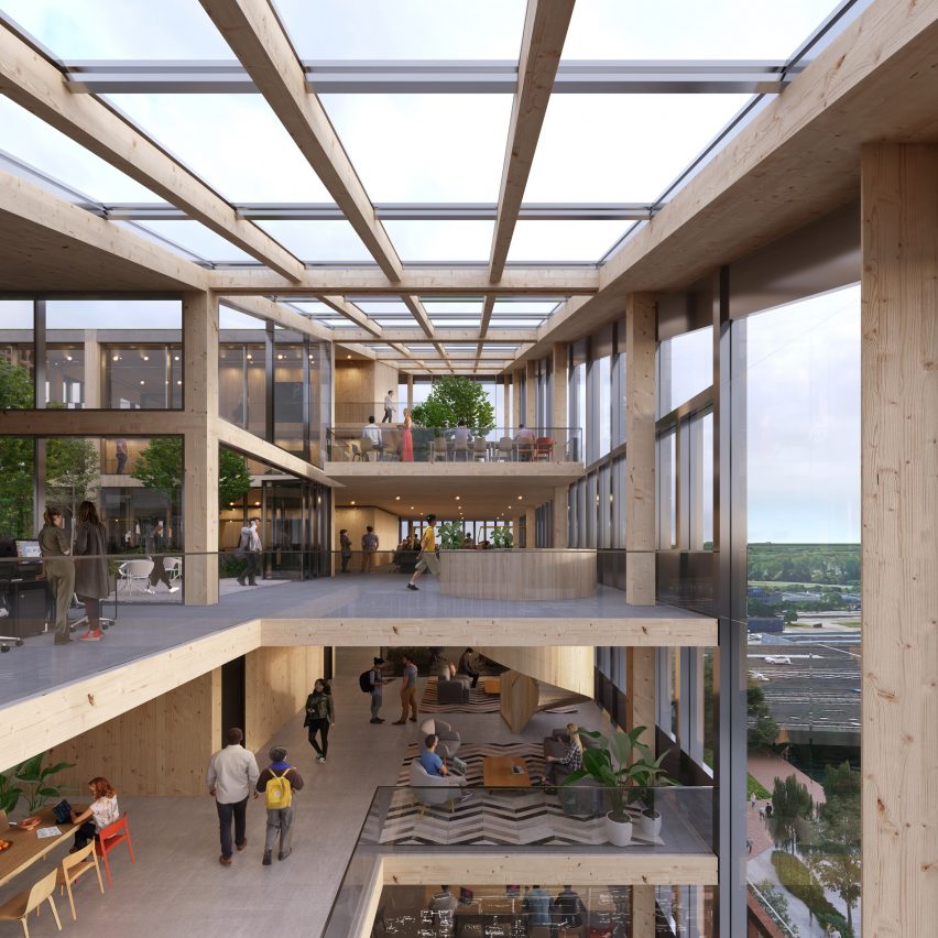 部分建筑将完全由木材建造,另一些将由钢和木材或混凝土和木材的组合建造。