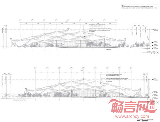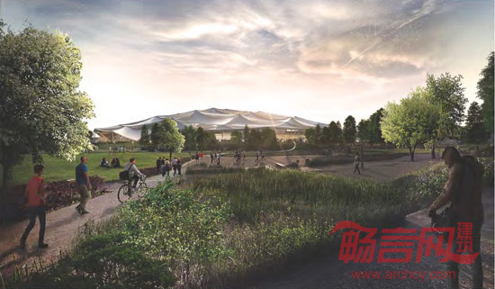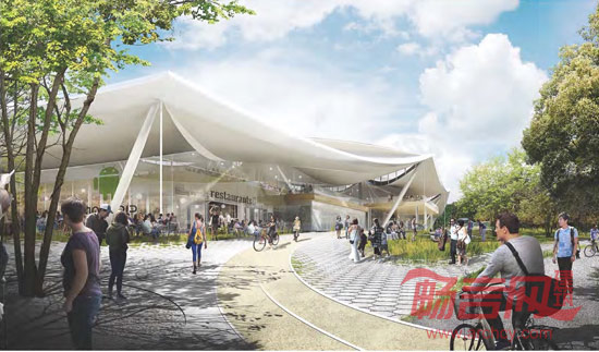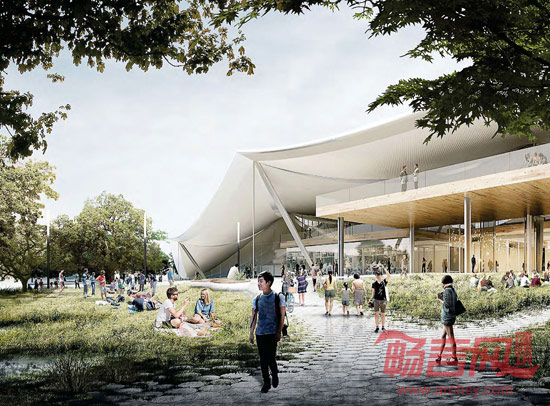 原有的设计方案中,大楼形状像乐高积木,楼顶为玻璃顶棚。新方案采用了类似的设计决策。不过,原来方案中的玻璃穹顶被“光伏集成顶棚布”所取代,这样的顶棚布覆盖在楼顶上就像帐篷一样,而且还可以再生能源,调节室内气候和空气质量,并控制噪声。