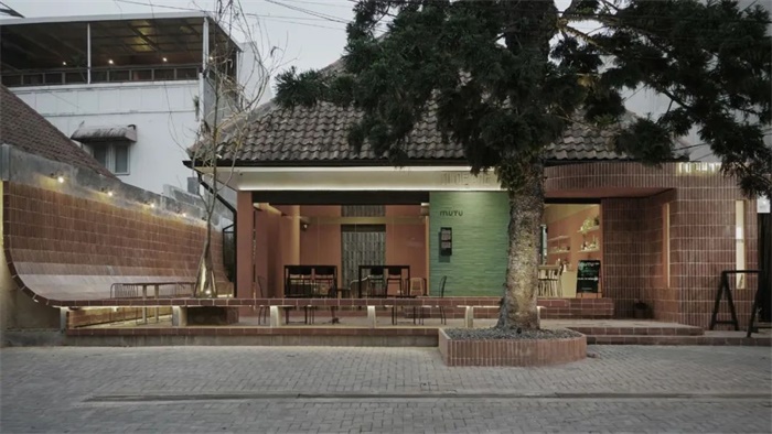 MUTU Loka 成立于 2022 年,以纪念 Cilaki 33 的发展,并置叙述一种陈旧的当代生活方式。该场地上有几个建筑体,原有建筑由 30 厘米厚的墙体构成,没有任何钢筋混凝土支撑柱或梁。其余的建筑体量因不同业主的不同活动需要而有机地分布,造成布局和功能上的杂乱无章,并留下许多从结构到维修的现场问题。由于附加建筑物的层次错乱,原有建筑物的美未能体现。这促使我们决定从现有的主体建筑群中拆除无效的附加部分,恢复原有建筑,同时暴露出解构的砖块,作为“Tiloejane”故事的叙事点。