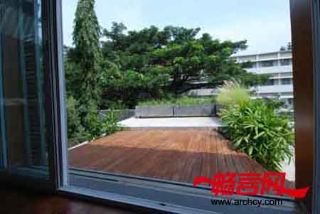 旧宅位于这个400平米地块的中心地带,这样,它周围的空地就可以作为住宅和周围繁忙区域(住宅的一侧有一所学校和一个庙宇)的一个缓冲地带。房子建造的很有层次感,这样不仅能安装更多的窗户,让房子更明亮,它也将住宅的室内与室外区域融合在一起。住宅以这样的方式与周围环境相连,不只让房子有更好的安全性,也能很好的保护住户的隐私。