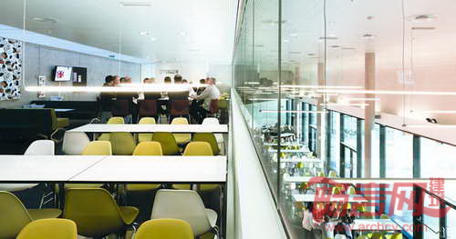 建筑采用完全透明立面,旨在利用异常珍贵的阳光。任意设置的明快色彩窗户、玻璃门和装饰物营造出强烈的对比反差和友好放松的氛围。