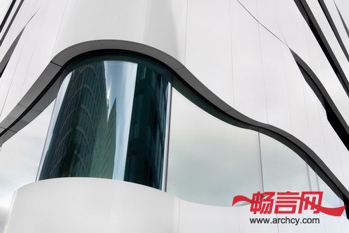 柏林Gnädinger建筑事务所以人类肌肉纤维为理念出发,设计了一个形状新颖、抽象的幕墙,它围在六层的混凝土结构外围,形成了1000平米的楼层面积,让大楼显得漂亮又有活力。Gnädinger的设计将高科技和自然和谐的融合在了一起。大楼外层一条条白色缎带式的装饰是预先制作的,它是根据人类肌肉纤维的模型设计的,象征着复杂的生物进化过程和结构。大楼的“外壳”是用铝板和玻璃幕墙组合而成的,它在柏林开了先河 —— 柏林大街上不是传统的石头建筑和就是现代的玻璃建筑。在Otto Bock科学中心周围的建筑都处于著名建筑师之手,包括Richard Rogers,Renzo Piano,Helmut Jahn, Hans Kollhoff和GMP建筑事务所等等,这也显示了这座紧凑建筑的独立和自信。
