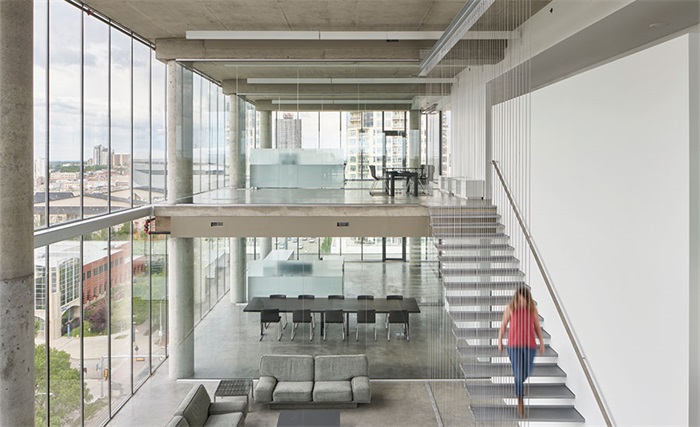 设计结合了三/四层玻璃系统进行隔热。在夏季,建筑几乎无需人工照明。北侧的开放楼板被柔和的日光自然照射,窗户亦无需设置百叶。同时,建筑尽端设有大型隔热阳台和太阳能屏风,以控制阳光的介入。