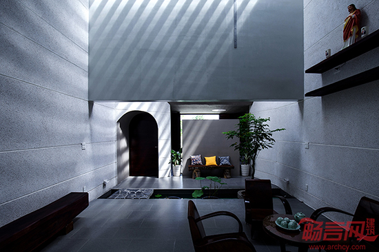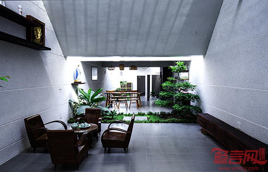 这座民宅建在一片5x40米的狭长土地上,为了给业主营造一个安全舒适的港湾,建筑师尽可能地考虑了自然光线的照入,并且在小型的室内花园中栽种了绿色植物。