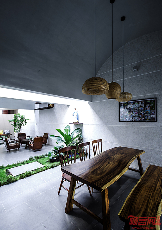 越南建筑工作室23o5完成了一间名为“长洞”的民宅设计。这座民宅位于永隆市以东40公里处,这里居住的人们是从广阔的水草丰茂的土地上迁居而来的,在这片杂乱、自然光线稀缺而且生活条件差的居民区,还有许多不安全因素。为了躲避外界严酷的现实,人们倾向于待在家里。