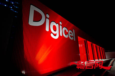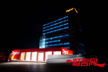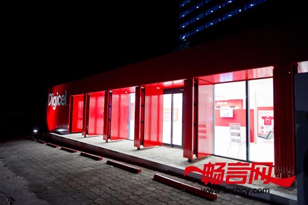 绯红色是Digicel店面的主导颜色,公司的标志也与百叶板幕墙融合了在一起。