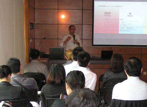 峰会的主讲嘉宾通过之前精心准备的PPT文件,将精彩的设计理念与实例结合在一起,图文并茂地为与会人员讲解相关内容。Marcus演讲的主题是“自然设计,竹之城——梦想与现实”;Tierk Reijenga以曹妃甸项目为例作了名为“生态城市 低碳办公”的主题演讲;Jacqueline作了名为“伦敦零碳宜居的最佳实践”的主题演讲;TOTO负责人结合公司产品特点作了名为“智能、节水与环保”的主题演讲;加拿大木业协会代表演讲的主题是“温哥华——人类宜居城市的生态选择”。同时,来自上海建筑科学研究院、美国凯里森建筑事务所、美国CMC建筑与规划设计事务所、EDG等知名设计公司的中外设计师纷纷利用周末时间冒着大雨参加了本次峰会,并与主讲嘉宾进行了深度交流。