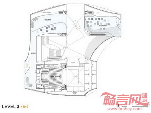 韩国世宗表演艺术中心活跃了建筑周边的城市景观,渐近型建筑反映了城市日益深厚的文化程度。在单体建筑内,中心设有多种功能设施,体现了当代城市生活的灵魂。强悍的球茎形式具有友善、亲和的姿态,两个入口沿对角线将建筑几何体切开,起到扩大人员流量的作用。周边景观烘托了公共入口,也重新定义了周围的城市景观。从主入口前的大广场,人们通过一个高大的玻璃幕墙,可欣赏到建筑的内部空间,从而营造了表演者和公众之间的互动性。建筑参考了附近寺庙的曲面结构,是对世宗古建筑的重新诠释。