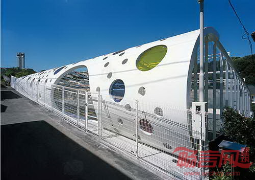 Machida Kobato幼儿园位于东京,运动场设计理念是儿童可以自由玩耍的阳光花园。项目的设计方是Etre设计工作室,是一座彩色圆形窗户装点的混凝土起伏建筑。
