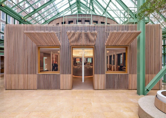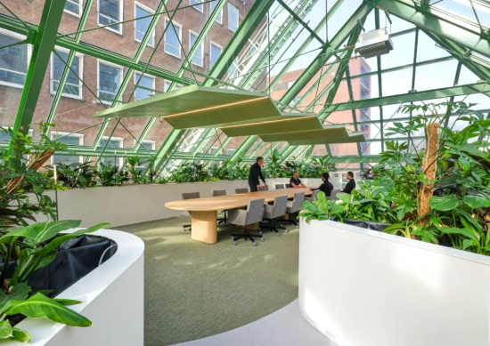 项目的挑战在于优化这些空间的多功能性,重点在于促进互动、协作与联系。此次改造的核心是引人注目的温室大厅(Orangerie)—— 一个充满绿意的空间,将两座现有的小空间及其周边区域重新构想为让人置身自然的、生动的交流场所。