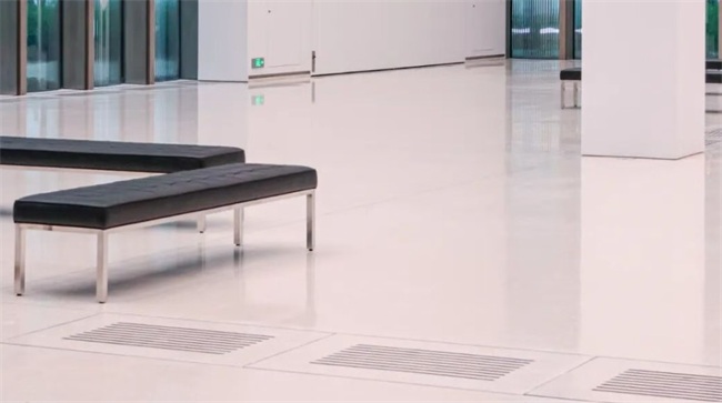 通过精确控制骨料配比与色彩变化,地面在视觉上保持连贯并引导观展动线。设计与展览主题相呼应,形成独特的空间语言。施工过程涵盖材料研发、试样打板至现场铺设,依循标准,工序包括基面处理、摊铺、多次研磨及罩面养护等。