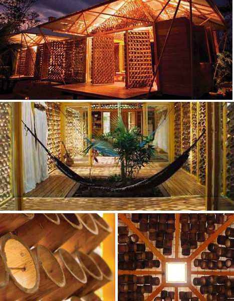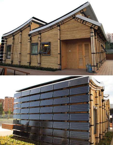 “阳光旅馆”是一座由太阳提供能源的竹屋,他们之所以选择竹子作为主要建筑材料是因为竹子不仅仅是一种可再生材料,而且还能够将碳吸入土壤之中,在整个生产过程中最大限度地减小二氧化碳的排放量。这座建筑的最大特点在于它拥有两块弯曲型的太阳能面板屋顶,其面向太阳的墙壁也覆盖一层光电面板。