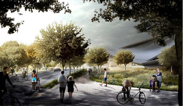 Google新的总部园区原占地400万平方英尺(约11万坪),计画新增250万平方英尺(约7万坪),大到像一座“Google城”空间中包括一超大型透明玻璃、流线未来感的顶棚覆盖园区,让空间由传统的建筑元素如墙壁、窗户与天花板中解放,除了可以更好地利用自然光,还能调节气温、污染与音量。建物群除了有跑道、自行车道、停车场以及咖啡馆、餐厅和商店等,了因应公司的新理念“大自然之中工作”,还规划了12公顷绿地,拥有植物、动物和各种自然景观,彷彿一座“生态公园”,希望能彻底打消城市建筑和自然环境之间的界限。