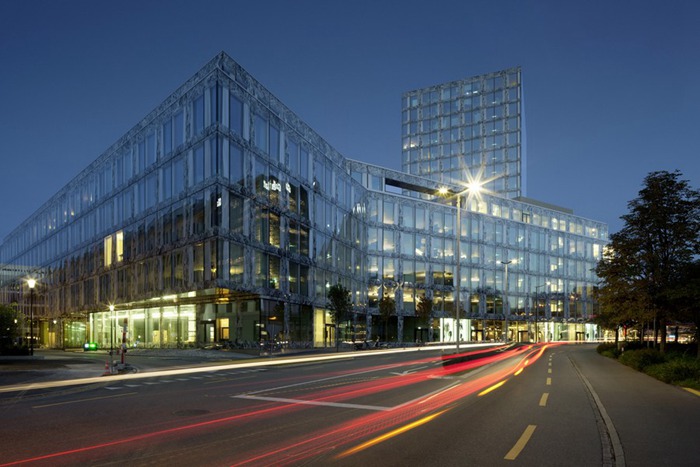安联总部办公楼位于瑞士苏黎世市中心外围,是一个有5层裙房,20层塔楼的综合功能大楼。