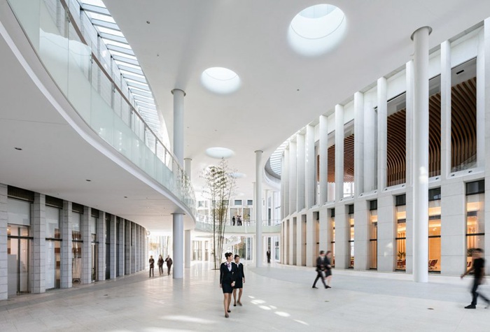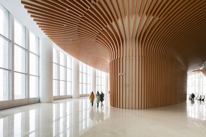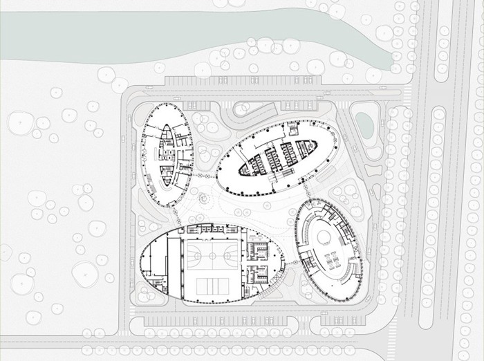 由KPF设计的哈尔滨银行总部,将位于中国东北部金融中心的零散个体经济有机的凝聚在一起。坐落于哈尔滨上江路和群力第四大道的交界处,该总部大楼如同城市大门,把守着机场与老城区的交通要道。该建筑综合体包括银行办公区,迎宾酒店,健身俱乐部,银行大厅,会议大厅和货币博物馆。位于底层的入口大厅让场地内所有组成元素相互渗透,联系紧密。餐厅、零售商店和咖啡馆环绕建筑外围而设,进一步强化了其社交中心的地位。与此同时,松花江的壮丽景色也尽收其眼底。