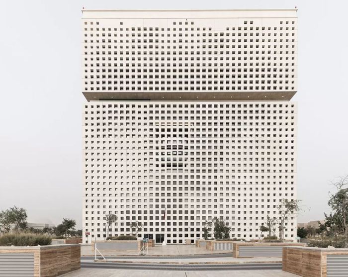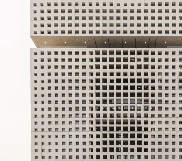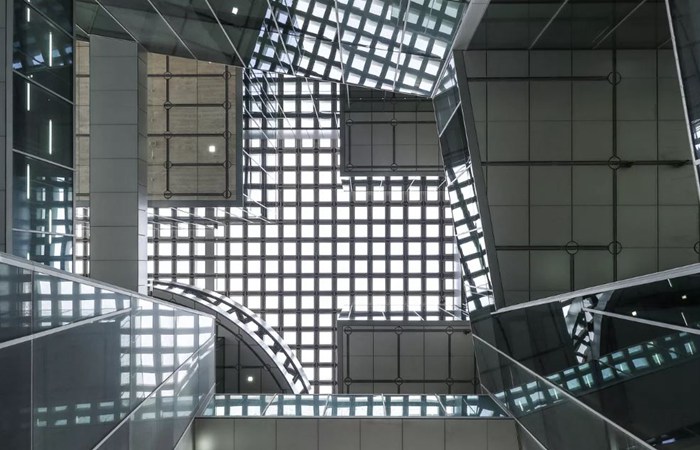 于近日落成的卡塔尔基金会总部大楼是典型的OMA作品。功能各异的空间体量错落堆叠,推导出最终的设计方案。远远看去,建筑不过是一个坐落在悬浮平台上的乏味方形体量,除了一道连续凹槽使得建筑的上部微微脱离于主体空间,打破了完整的界面外,与大多的现代建筑并无二致。然而一旦进入建筑,其内部空间将彻底颠覆这种平凡之感。空间看似独立却又环环相扣,恍如出自匠人之手的精妙乐器。礼堂、会议室、空中廊道、办公室与咖啡厅,通高的中庭创造出各个空间间连贯的微妙关系,也提供了互相眺望的视角。