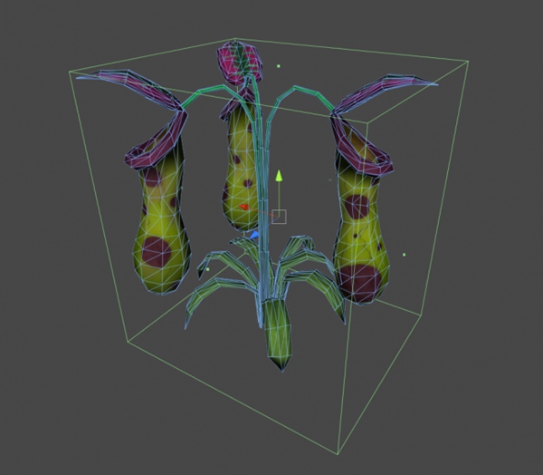 (这个植物有一个盒子碰撞物。虽然其3D模型中有一个有机形状,但游戏中的玩家对象将像对待一个矩形固体一样与之互动)
