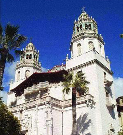每个成功人士都想修建一座梦想中的住宅,赫斯特也一样,1919年他开始构思修建一座举世无双的私人城堡。赫氏堡建在距洛杉矶360公里的圣西蒙。这里从太平洋边开始到桑塔露西亚山,4万英亩的土地都是赫家的私产。那广袤的草场,绵延的山丘,举目可望的海景,在赫斯特心中有不可替代的位置。到1919年,当他能够实现城堡之梦时,他毫不犹豫地选择了此地作为基址。