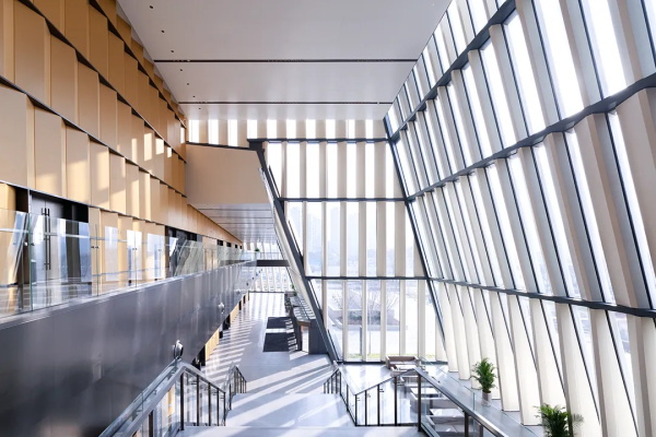 绿色设计方面,通过精心设计的可开启窗系统,中央大堂在一年中大部分时间都能实现自然通风,大幅降低能源消耗。创新的参数化立面设计,不仅与太湖周边的山峦形态相呼应,更通过精确计算的光影效果,有效调节室内光照强度。