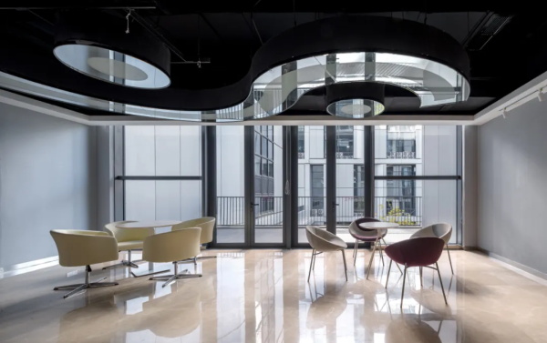 建筑立面采用了玻璃与蜂窝铝板的组合幕墙系统。设计通过“内凹”的手法创造了半室外的小挑台,1150mm进深的灰空间,供员工休憩的同时,也起到了自遮阳的作用。业主将审美与品味看作“企业文化中看不见的竞争力”,虚实相生的运用,赋予建筑丰富的表情。
