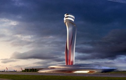 这个将看得见旅客从新机场飞进飞出的椭圆形塔楼,是从伊斯坦布尔的标志郁金香获得设计灵感。