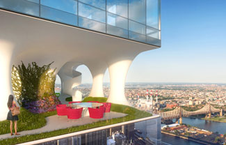 这个项目由MRR 1326公司开发,这座28层的住宅楼将延伸至56街和57街之间,包含175000平方英尺(16258平方米)的公寓。虽然该塔楼的大部分位于56街一侧,但其入口将是一个六层楼高的镜像铜“大门”,位于57街。