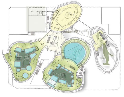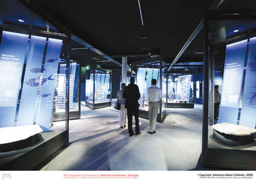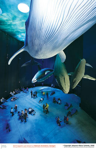 与实验室或办公楼比较,博物馆的功能要求与光线有关,但水族馆有它们自己的设计要求。在养鱼缸里的大量的水,必须被处理过。要求有大规模的压缩机、冷却器、水泵和过滤系统,这些设备都隐藏养鱼缺的后面。