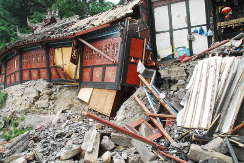四川都江堰大量被破坏的古建筑(图片来源:百度)