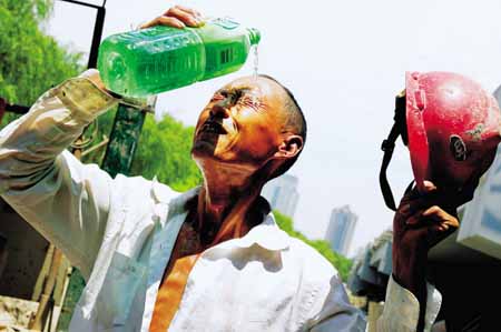 高温下 农民把清水浇到脸上降温(图片来源:百度)