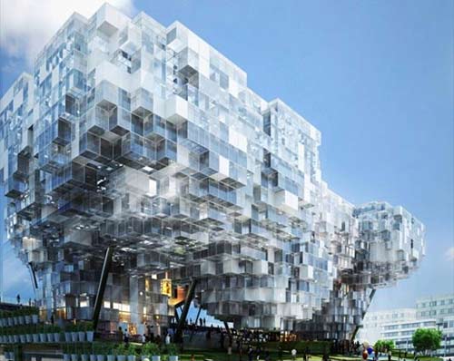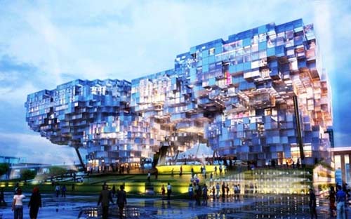 这个是令人难以置信的数字大楼,主题为:“My Dream, Our Vision”,为2010年世博会设计,该项目采用排列立方体生成一个壮观的模块化雕塑,新加坡作为一个高效率,充满活力,国际化和前瞻性的国家,在这个建筑中被体现。