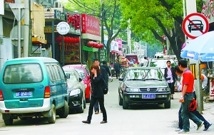 礼士胡同与东四南大街路口交汇处,乱停靠的汽车占了半面车道,造成路口交通秩序混乱。席贺兴摄