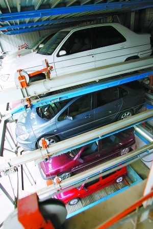 华星国际影城北侧胡同内一单位的立体停车场。席贺兴摄
