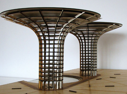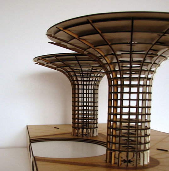 摩天大厦中有医院、学校、食品仓储中心,最重要的是建筑中间存储的是水。
