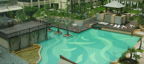 那么于是,我们可以理解围绕高档酒店的一切,都为什么要富贵豪奢,要气派非凡,而高档酒店的景观更要呈现几乎近似于当年御花园的种种特征:树木、花卉要名贵,要异国,喷泉要气势,锦鲤要昂贵、珍奇,石材要进口……,如果比照今天关于环境要求的绿色目标,我们甚至可以得出结论,一切正好是相反的!现实中盛行的高档酒店景观趣味完全是反“绿色”的!
