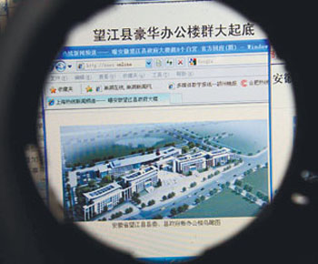此前网帖曝光财政穷县,安徽望江县委、县政府占用182亩耕地兴建超豪华办公大楼,建筑面积达43600平米,相当于8.5个美国白宫,且装修豪华。安庆市政府新闻办通报“办公楼建筑面积不超标”。