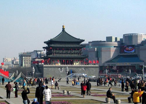 西安市钟楼及周围广场规划 保留较好的人文气息(图片来源:百度)