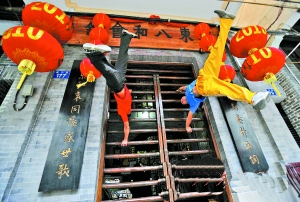 八和会馆,时尚跑酷一族和古色古香的西关大屋相映成趣。(图片来源:广州日报)