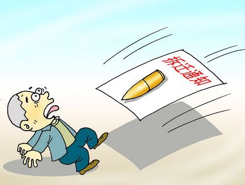 内蒙古呼和浩特市58岁的刘老汉接到“限拆通知”,这份充满火药味的“拆迁通知”,除了威胁说“拒不搬迁者,王××就是你们的榜样”外,还称“对抗政府指示、拒不搬迁的钉子户,本公司将为每位住户赠送一份礼品”,通告左下方用透明胶带贴着一颗枪弹。此事得到当地派出所证实。